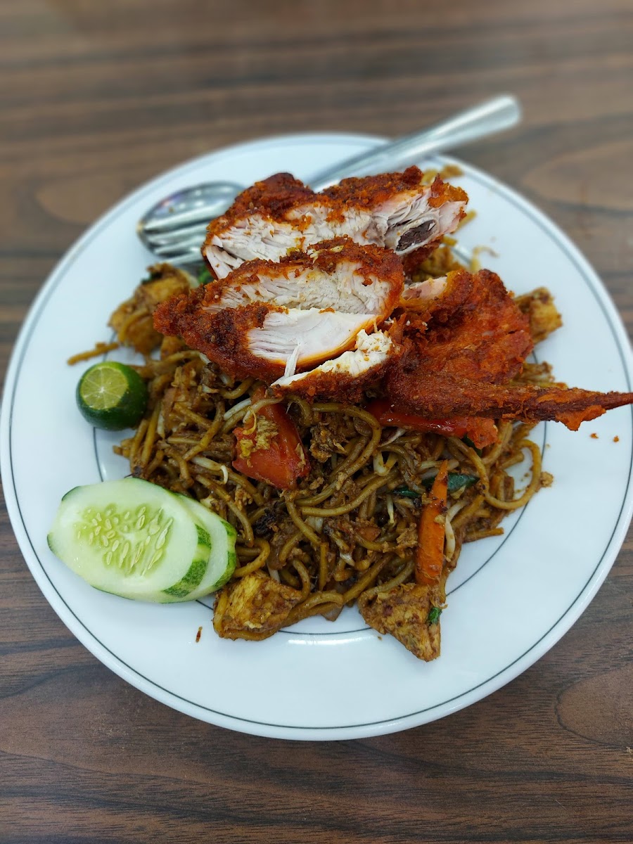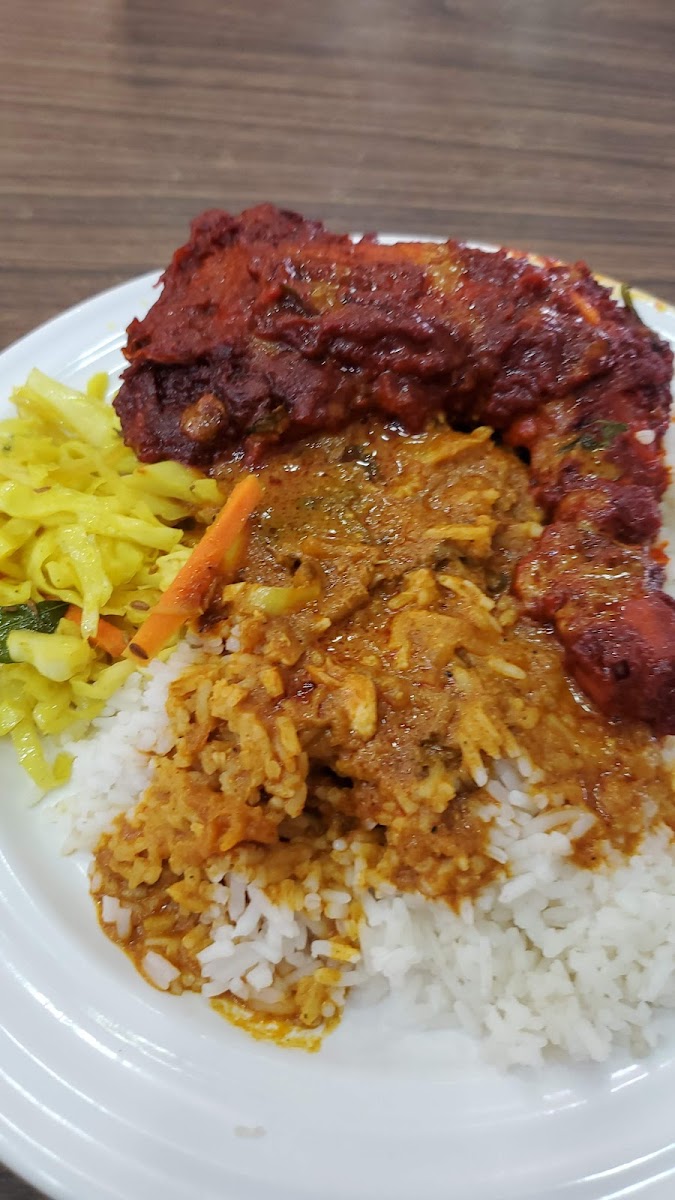 good pitstop en route to sport district. plus there's fresh milk. pretty much exclusively in neighborhood. these folk clearly care about presentation, but also handle basics. mind sweetness levels though. fish curry is particularly good, with asam kicking hardest in team effort. regulation dhal with sambal is also up there. former is substantive and comforting, while latter packs spicy tasty kick. ayam bawang is excellent. ditto perut. fried chicken notch below at ok. can also vouch for roti, tosai and puri. sup tulang is superlative. stereo heat from pepper, and (surprisingly) ginger. ox is tasty, but chewy, especially off tail. veg within rounds off bowl of solid heart and soul. also worth checking out: grilled chicken, with inverse-scale pricing. enables cryptid fantasy of four-legged fowl.